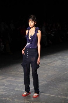Porém, levando a moda ao pé da letra, a coleção era basicamente uma desconstrução da alfaiataria, principalmente no masculino. Calças de gancho baixo e bolsos utilitários (na parte interna da coxa, por exemplo, para esquentar as mãos) ou com tiras redondas nas laterais demonstram domínio da modelagem. Vale destacar também os macacões, mais curtos e de gancho baixo, peça-chave da temporada, aliás.