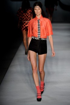 O release dizia que o verão da grife, sob a direção criativa de Mauricio Ianês desde o inverno, trazia um mix dos estilos derivados dos anos 50 até os 80. Rock, mod, punk, new wave se misturaram para criar um jeanswear cheio de referências. Na prática, o que mais se viu foi a influência da primeira e da última décadas, salvo pela faixinha 70’s nos cabelos e as peças estruturadas e quadradas do final, que lembravam um pouco a silhueta dos anos 60.