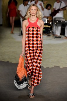 No feminino, mistura de estampas e cores como turquesa, amarelo, rosa, preto, marrom, laranja, além de texturas e pontos de brilhos aplicados. As formas variavam entre chemises curtas e longas, vestidos-camiseta soltinhos, macaquinhos, shorts com detalhes torcidos, blusas com nós, chapéus e bolsas de ráfia reciclável.
