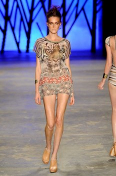 A grife de moda praia de Isabela B. Frugiuele estreou no Fashion Rio exalando sensualidade e poder. O tema, como dizia o release, girava em torno da vida selvagem, com direito a muitas estampas de rosto de tigre em maiô e camisetas, além de tribais, tanto em desenhos como em aplicações.