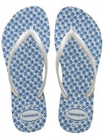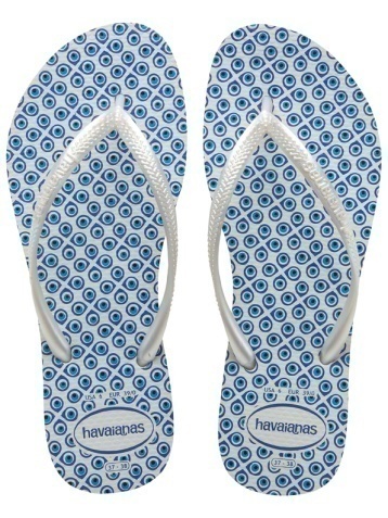Havaianas com desenhos de Olho Grego – Slim R$ 44,90 e Top R$ 41,90 – www.havaianas.com.br – SAC (11) 2505-7405 e outros estados: 0800 70 70 566