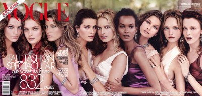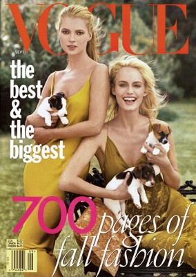 Pra mim ainda existem poucos prazeres iguais a ter a Vogue de setembro nas mãos… Me lembro até hoje da minha primeira edição, de setembro de 1996, coincidentemente com Kate Moss na capa (junto com Amber Valletta). Eu tinha saído de um simulado do vestibular, passei na banca, comprei a revista e fui pra casa toda feliz, esquecer da vida por algumas horas…
