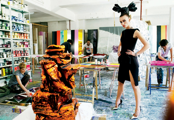 a) Ela tem sempre um editorial clicado fora dos EUA, de preferência por Mario Testino. Roma com Sienna, Keira Knightley em Berlim, e Viena com Natalia Vodianova são os que vêm primeiro à cabeça. Desta vez é Karlie Kloss na China.