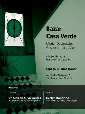 O evento que reúne diversas grifes niteroienses e manifestações culturais, acontece no próximo sábado dia 30 de abril, a partir das 14h, no Espaço Cristina Daher, em São Francisco. Com entrada franca e 12 marcas participantes, o bazar pretende fazer uma reunião de moda, decoração, gastronomia e arte.