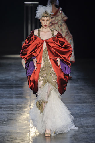 Lino Villaventura: outro estilista que adora um teatro, fez um mini espetáculo inspirado no pintor Francis Bacon, com muitas capas, coroas na cabeça das modelos, veludo, rendas estampadas, patchworks, bordados e quimonos em cores vivas.
