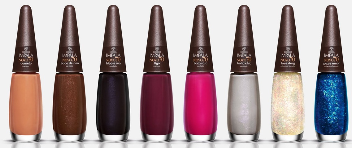 Estamos na época de lançamento dos cosméticos mais desejados pelas mulheres atualmente, os esmaltes! Inspirada pela década de 1970, a Impala lançará a coleção intitulada Novo Hippie. Com 8 novas cores que remetem à época, os nomes escolhidos fazem a mesma linha, claro. Além dos cremosos, a Impala trouxe dois flocados (azul e furtacor). A coleção deve chegar às lojas até o fim de abril.