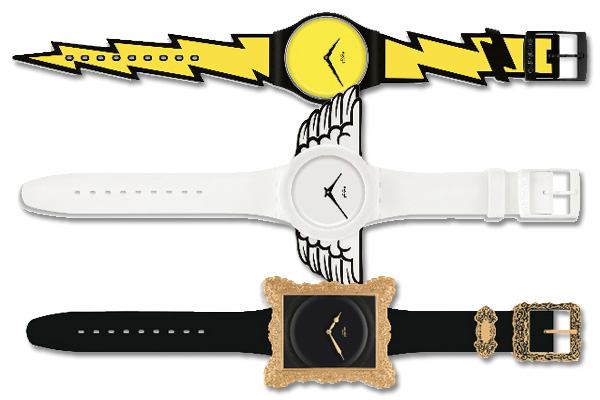 Conhecido por suas “asas”, o estilista americano Jeremy Scott faz sucesso outra vez, dessa vez em parceria com a Swatch. Famoso pelos tênis-desejo criados para a Adidas, agora ele oferece mais um produto para os fashionistas de plantão! A parceria rendeu uma exclusiva linha, composta por três modelos de relógios, cada um com um elemento pop presente na vida do designer. U$70,00 cada, na www.swatch.com