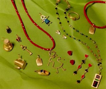 A designer de jóias Junia Machado trouxe um pouco das imagens sedutoras e lúdicas do filme de Tim Burton para sua coleção “Alice”. As peças, feitas de ouro amarelo e massa modular, brincam com a variação de tamanhos da personagem e representam as mudanças com uma linha de bonequinhas-pingente em três tamanhos.