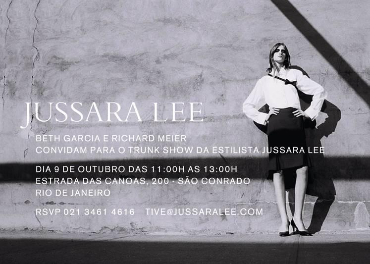 Como já falamos aqui na MODALOGIA, acontece neste sábado a versão carioca do trunkshow da estilista Jussara Lee. Além de estar lançando sua nova coleção, a estilista veste até domingo os membros acompanhantes do comitê do arquiteto americano Richard Meier em sua visita ao Brasil.