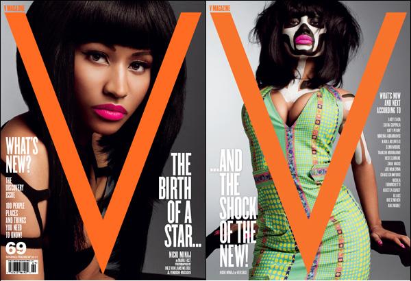 Para terminar, a capa da V 69 é a rapper Nicki Minaj, que vem chamando atenção e está pronta para ganhar os holofotes. As imagens são de Inez van Lamsweerde & Vinoodh Matadin. Olha o estilo da moça no vídeo Your Love.