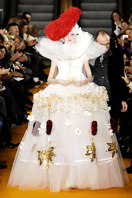 As noivas são uma atração à parte nos desfiles de alta-costura. Antigamente, “la marriée” sinalizava o fim do desfile com toda pompa. Hoje em dia ela não é assim o ponto alto, mas continua fazendo parte do glamour especial do evento. Nem todos os vestidos são lá muito usáveis, mas só de ver já dá uma vontadezinha de casar…