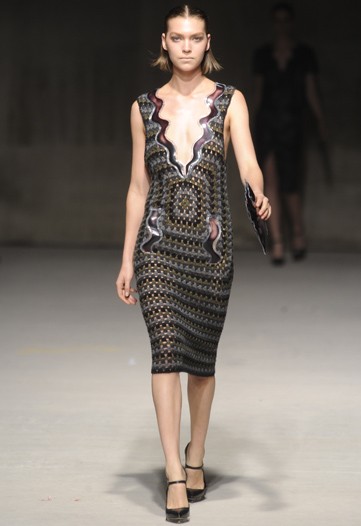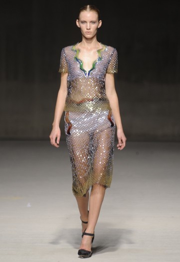 Do lado da modernidade – e que modernidade – Christopher Kane fez mais um desfile de cair o queixo. A silhueta era simples, com muitos tubinhos pretos de lã, só que os acabamentos, tiras plásticas manchadas de várias cores funcionando como alças ou bolsos mostraram que o talento do escocês é mesmo enorme!
