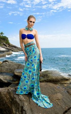 A grife de moda praia traz um verão que mistura tecidos tradicionais como o linho, aos fluidos e leves na mesma peça. Novas texturas em paetês e lurex estão presentes, tanto nas saídas de praia como nos biquínis e maiôs, dando um ar luxuoso à coleção. Entre as estampas, desenhos de pena de pavão e de coruja.