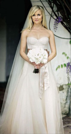 E em Hollywood teve o casamento de Reese Whiterspoon, Kim Kardashian (que foi mais curto que seu terceiro vestido…) ambas usando Vera Wang e, claro, de Bella e Edward, em “Amanhecer”, com a noiva vestindo Carolina Herrera!