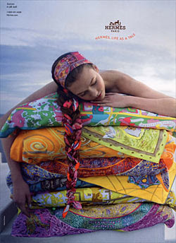 Hermès: Karlie Kloss relaxa sobre travesseiros da grife
