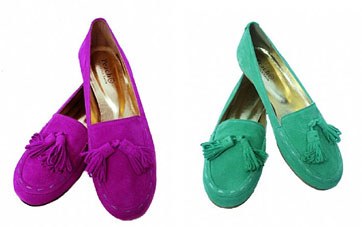 Para quem adora mocassins mas acha que eles possuem um ar muito clássico e antigo, fica a dica: esses alegres e coloridos modelos feitos em camurça da Peach by Constança Basto, além de modernos são confortáveis! Por R$228.