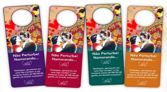 A Cantão fechou uma parceria com os restaurantes Guimas, Manekineko, Zazá Bistrô e DaGraça para o Dia dos Namorados. Os casais que jantarem em um deles ganham esses avisos de “Não Perturbe”, que vem com uma parte destacável. É só levar essa parte em uma das lojas da marca para ganhar um brinde nas compras acima de R$ 150,00. www.cantao.com.br