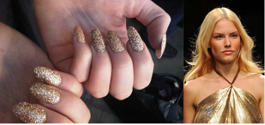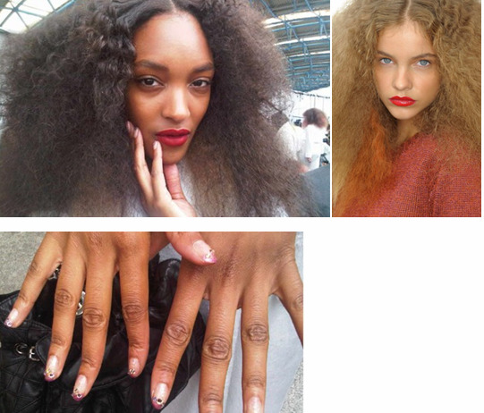 A beleza estava incrível, as modelos receberam um “St.Tropez tan” no rosto e desfilaram com batons vermelhos, cabelos total anos 70, soltos, divididos no meio,  frisados e com muito volume, inspirados no filme “Saturday Night Fever”. As unhas estavam deslumbrantes, com aplicação em pedras brilhantes. Definitivamente os anos 70 virão com tudo no próximo verão.