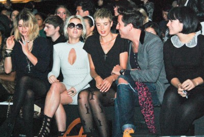 A socialite Pixie Geldof, Jamie Winstone, a top Agyness Deyn (vestindo meia-calça da House of Holland), Nick Grimshaw e a gravidíssima Lily Allen, estiveram presentes no desfile da House of Holland.