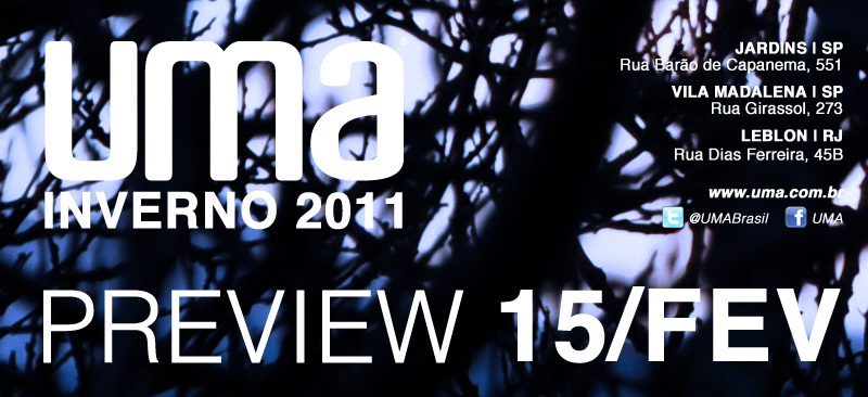 A marca UMA recebeu hoje em suas lojas o preview de sua coleção outono-inverno. A estilista Raquel Davidowicz trouxe para as peças uma estética minimalista e contemporânea, com o uso de materiais diferenciados que proporcionam um clima despojado e confortável e shapes que quebram o tradicional. Um exemplo são as formas geométricas que se misturam a drapeados. Quem quiser conferir as novidades da marca para próxima estação, vale a pena! É só passar numa das lojas da UMA: Vila Madalena e Jardins (São Paulo) e Leblon (Rio de Janeiro).