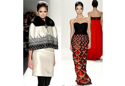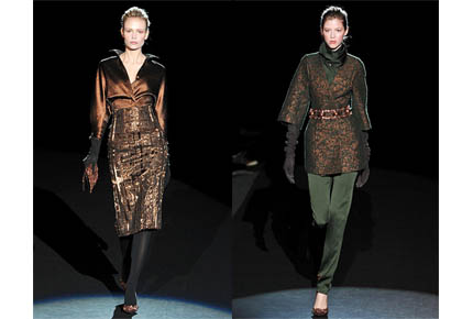 Carolina Herrera – A estilista venezuelana Carolina Herrera foi buscar no século XVIII a inspiração para a coleção que apresentou na semana de moda de Nova York, marcada pelas referências à arquitetura da época. Herrera apostou nos bronzes, nos ocres, no verde escuro, nos tons de cinza, no azul e no violeta. Esta coleção afina a cintura e alonga as pernas, já que traz calças-cigarrate e saias lápis justas, de cintura alta e um pouco mais longas. Para confeccionar as roupas, muitas delas com detalhes metalizados, a estilista usou seda, jacquards, tule, organza, mohair (tipo de lã) e couro, muitas vezes misturados e sobrepostos, o que lhe permitiu obter texturas diferentes.
