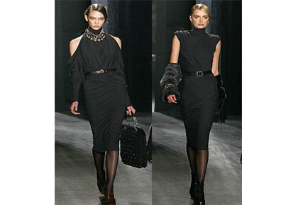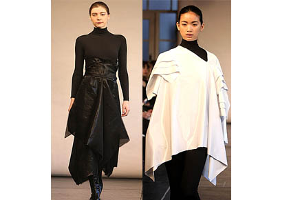 Yeohlee – Yeohlee Teng criou uma coleção para o outono 2009 repleta de dobras e camadas assimétricas. Com muito couro e lã em terninhos e casacos, o black denim também obteve uma participação de peso na coleção.