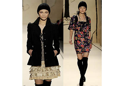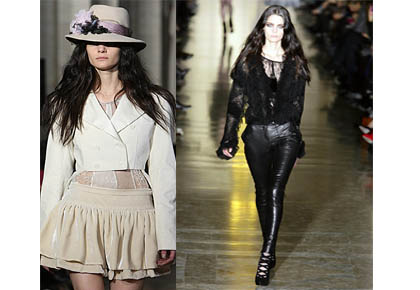 Jill Stuart – A americana Jill Stuart inspira-se em mulheres que são ícones do rock e aposta nos tamanhos reduzidos e em muita alfaiataria para o próximo Inverno. Nomes como Françoise Hardy, Anita Pallenberg, Stevie Nicks e Madonna foram referências para a criação da coleção deste outono 2009 de Stuart. Os modelos de vestidos curtos dominaram a passarela. Casacos do tipo fraque, calças de couro cobertas por franjas, malhas com formato de rede, laços bem poéticos, estampas e bordados florais, além do uso de cores neutras, como o branco, o preto, o bege e o cinza em muito couro, veludo e chiffon,deram o toque roqueiro do dia.