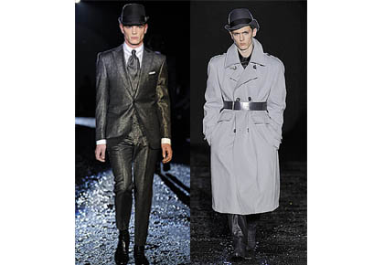Z Zegna – A coleção masculina da marca Z Zegna prima por ternos bem ajustados e de corte moderno. A inspiração da coleção, segundo o diretor criativo Alessandro Sartori, foi simplesmente querer tornar o homem elegante, masculino e poderoso. Longos casacos e o chapéu coco levaram a coleção para a década de 50 e deram um ar bem britânico aos poderosos homens de negócios.