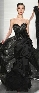 J. Mendel abriu o sexto dia da semana de moda e apresentou variados modelos de festa. Vestido longo com laços gigantes nos ombros, tomara que caia com movimento, ou de um ombro só deram o ar de luxo. Casacos com detalhes em pele, característicos de Mendel, foram o ponto forte de sua coleção.