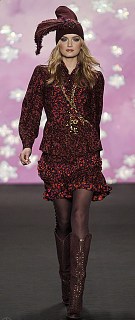 O desfile de Anna Sui pode ser classificado com um verdadeiro show. A Belle Époque trouxe a inspiração para os modelos da estilista. Os tecidos se misturam: cetim, veludo, chamois, algodão e renda estampada ainda se misturam com as meias calças que também aparecem coloridas. Botas no estilo country se destacaram assim como os acessórios, como os chapéus com penas e coroazinhas.