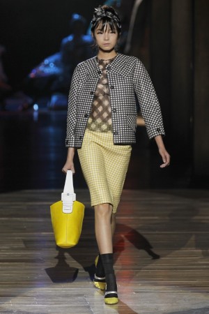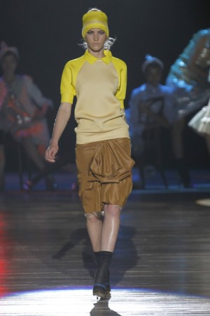 Se a moda virou um verdadeiro show, nada mais natural do que desfilar um espetáculo da Broadway. E foi assim, ao som de uma trilha que parecia um coral ensaiando os passos (“1,2,3,4”…) que Marc Jacobs fechou a New York Fashion Week. As 46 modelos apareceram posando no palco quando as cortinas se abriram e, uma a uma, desfilavam looks que são uma releitura de tudo que o estilista já fez – mas ao mesmo tempo são modernas e apontam para novas tendências, no caso, os anos 20, com interseções dos mods da década de 60.