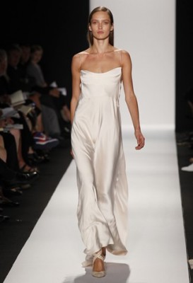 Narciso Rodriguez: a volta do minimalismo deixa o estilista “em casa” (um dos vestidos inclusive lembra bastante o de noiva de Carolyn Bessette-Kennedy) e ele abusou da silhueta alongada, de tecidos como linho e cetim e da cartela neutra (preto, branco e toques de vermelho). As únicas exceções foram vazados em forma de flores, contrapondo duas cores.