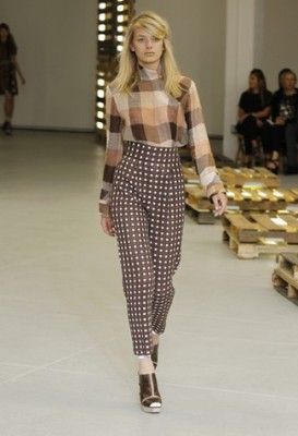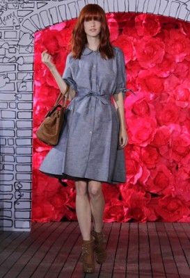 Mulberry: Emma Hill tem conseguido ampliar a percepção da marca além das it-bags, graças às ótimas roupas. O tema veio do romance “Grey Gardens” e a silhueta era bem ladylike, com saias midi de pregas, cintura marcada, capris, jaquetinhas, detalhes de rendas e texturas. Na cartela, branco, nude, preto, azul claro, royal e uma estampa de pele de tigre.