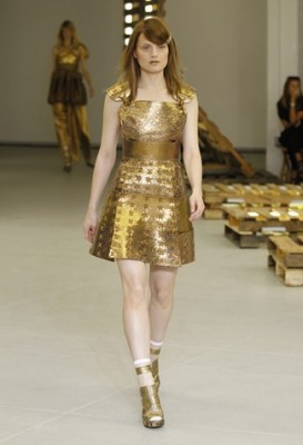 Rodarte: Kate e Laura Mulleavy são a dupla mais admirada da moda americana contemporânea, porém apesar de incríveis suas peças sempre pecaram pelo excesso de conceito. Desta vez elas surpreenderam ao mostrar looks comerciais, sem perder a essência da grife. Inspiradas nas florestas da Califórnia, elas investiram em texturas que lembravam troncos e folhas em peças sobrepostas e comprimentos midi. Alguns xadrezes apareceram em calças e suéteres e no final um look gladiadora, com saias douradas em faixas deu o recado da possível nova marca integrante do LVMH.
