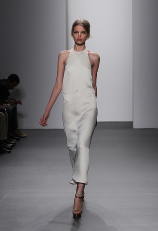 Calvin Klein: mais minimalista, impossível. Trabalhando formas geométricas, Francisco Costa fez uma das coleções mais “Calvin Klein” de sua vida, usando essencialmente seda nos vestidos e blusas quadradas, nas calças retas soltas ou capri. Os detalhes: fios de tecido como cinto e sobreposição de blusas. Precisa mais?