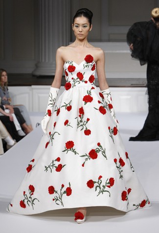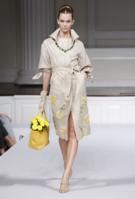 Oscar de la Renta: as flores foram a grande inspiração desta coleção romântica, recheada de peônias aplicadas, babados, rendas e linhos. Entre as peças, os hits da temporada: comprimento midi em saias e vestidos, e pantalonas, além das marcas registradas do estilista: tailleurs, cintura marcada e longos estilo debutante – lisos ou estampados de flores.