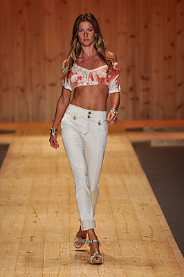 O SPFW já acabou, a mídia explorou tudo o que pôde sobre a presença de Gisele Bünchen na Colcci, e eu continuo me perguntando: por que escolhem as piores roupas para ela exibir na passarela? A coleção melhorou bastante, veio bem mais consistente. Mas o que era aquele primeiro look, com aquele topzinho que não parava de escorregar pelos ombros da top? Será que é porque Gisele é tão maravilhosa que segura qualquer coisa? Fiz uma pesquisa entre os desfiles mais recentes da Colcci e fui comparando os looks. Aí me lembrei que o último desfile internacional que ela fez foi para Dolce & Gabbana (tudo bem, outro estilo, outro público, outro orçamento) em fevereiro de 2007. Fui dar uma olhada nas fotos e só reforcei a minha opinião…