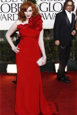 January Jones, de Versace, e Christina Hendricks, de Romona Kaveza