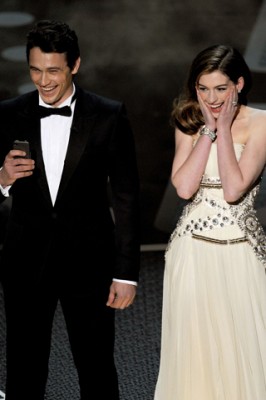 Anne Hathaway, de Valentino Vintage, e com James Franco (Gucci), de Givenchy Couture
