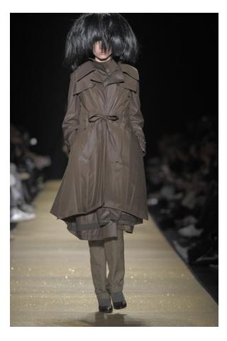 O 24º Festival International de Mode d’Hyères, um evento que reúne artistas, estilistas, fotógrafos e profissionais da moda na França, terminou no último dia 27 e como todo ano, premiou novos talentos do design de moda. O casal Marite Mastina & Rolands Peterkops, da Letônia, receberam o Grand Prix Du Jury Monde L’oréal Professionnel pela coleção “Private Detective”. Um dos looks (foto) é uma espécie de trench-coat marrom de couro sobre calça da mesma cor e uma peruca preta, cobrindo o rosto da modelo. Me lembra muito os trabalhos de Martin Margiela, Yohji Yamamoto e Comme des Garçons…