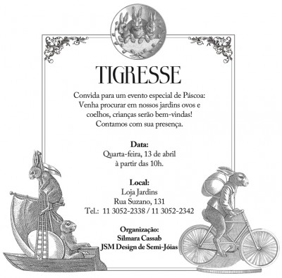 Para deixar a Páscoa mais charmosa, a Tigresse promove um evento especial, repleto de surpresas gostosas. A festa está acontecendo hoje (13/04), desde às 10h, nos Jardins, São Paulo.
