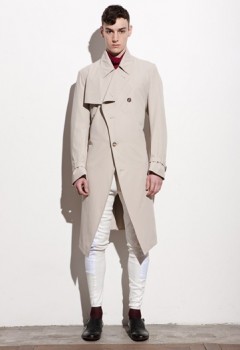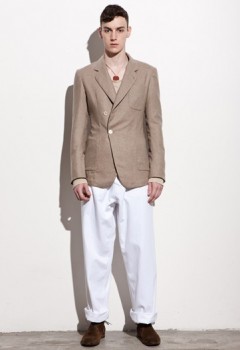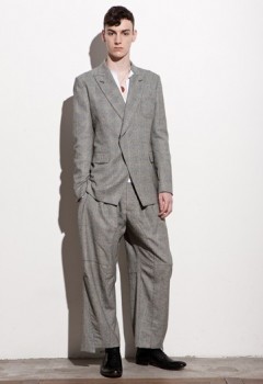 A primeira coleção de Sarah Burton para Alexander McQueen vai ser exibida na semana da moda masculina de Milão nos próximos dias. O site WWD mostrou um preview de alguns looks, que casam as referências da alfaiataria da Savile Row com a visão da Inglaterra que McQueen tinha. Trenchcoats, calças mais curtas e de gancho baixo, e blazers com abotoamento lateral são as peças-chave.