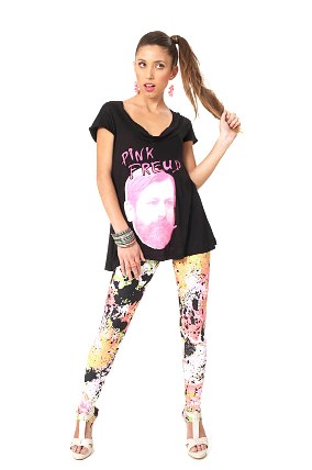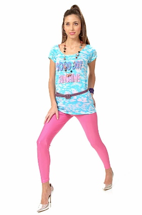 T-shirt e pulseiras My Philosophy, legging Q-Vizu, cinto Soulier, brincos Cantão e sapatos Jorge Bischoff.