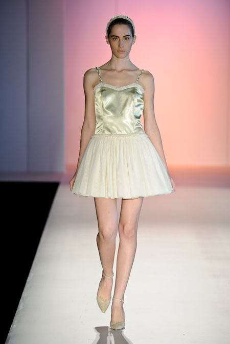 Juliana Ariza: A grife paulista abriu o dia de desfiles do Rio-à-Porter com uma maravilhosa coleção! A estilista Juliana Ariza criou desejados vestidos exclusivos.  Com um forte estilo retrô, os looks foram inspirados em diversas épocas, desde melindrosas e bailarinas ao guarda roupa de clássicas séries dos anos 60. Tules, paetês e ousados decotes nas costas, formavam a ótima coleção. Um vestido tomara-que-caia de noiva encerrou o desfile, com uma faixa preta na cintura. (Diana Monteiro)