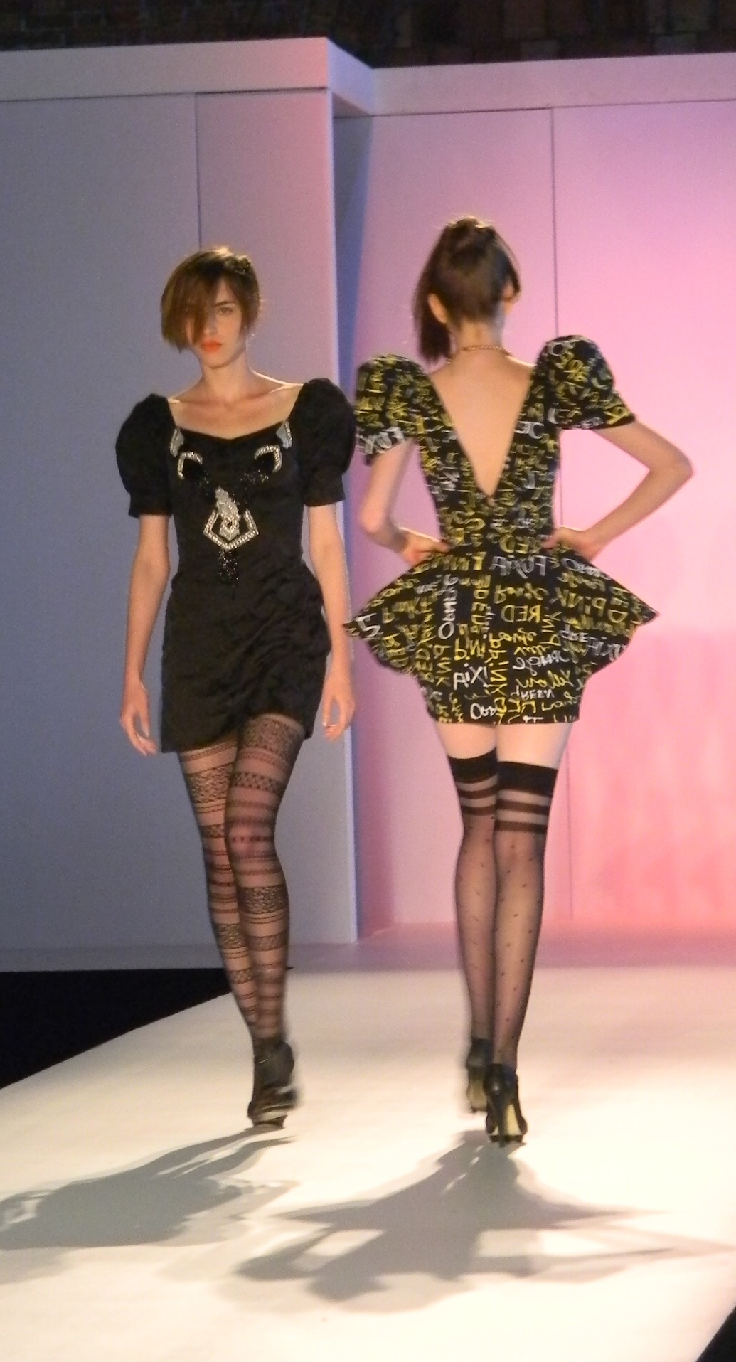 My Philosophy: batizada de “Labirinto”, a coleção trouxe peças inspiradas no estilo gótico e no período renascentista, com uma leveza pop. Amy Winehouse não compareceu ao desfile como o esperado, já que a marca havia enviado ao hotel da cantora alguns agrados. Mas para surpresa de todos, uma sósia esteve presente na primeira fila. A coleção emitiu um ar um certo mistério, envolvente como peças de arte. Destaque para as rendas e meias trabalhadas, além de clássicas estampas e cores neutras, como o preto e o branco.