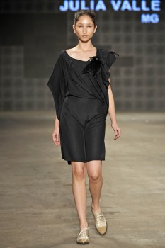 Outra veterana do RMH, a estilista mineira já arrancou elogios por suas criações de modelagem complexa. Seu verão foi chamado de “Discontinuum” e veio recheado de assimetrias e moulages gráficas. Os tecidos, como linho, seda e algodão, são queimados para receberem bordados especiais e a cartela é primordialmente formada por preto, com a exceção de alguns pontos em cobre.