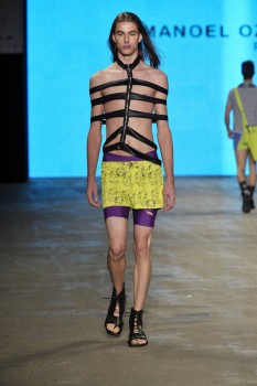 O desfile masculino do estilista pernambucano uniu clubbers com o estilo clássico de Chanel, trazendo estampas de caveira, tiras sado-masoquistas e cores vibrantes em shorts, bermudas e camisetas.