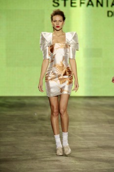 A veterana do RMH chamou sua coleção de “Origami Orgânico” e trabalhou as diversas possibilidades das dobraduras, focando os volumes ora nas saias, ora nos ombros. Na cartela, cores alegres como amarelo, verde, rosa e azul combinadas a preto, branco e nude. Entre as estampas, vale destacar as de ilustrações de origamis estilizados.