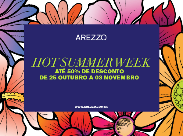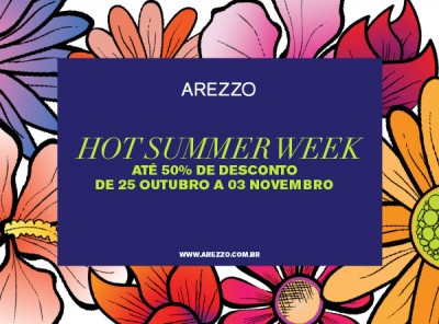 Semana de Descontos na Arezzo By 2010-10-232010-10-23Sem categoria De 25 de outubro a 03 de novembro, todas as lojas da Arezzo vão participar da Hot Summer Week: uma semana com descontos de até 50% em peças selecionadas! É a chance de garantir aquela bolsa ou sandália que você anda namorando há meses… Preparem-se!
