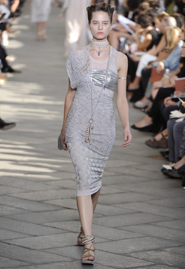 Missoni: Angela Missoni também buscou referências tribais, mas o resultado foi uma silhueta alongada, com muitas sobreposições de bandeaus sobre túnica-sári e os tricôs típicos da grife. Nem sempre deu certo e os melhores looks foram os finais.
